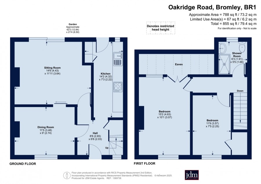 The property features two spacious double bedrooms, with the principal bedroom benefiting from a well-appointed en suite bathroom and built-in storage. The family bathroom is immaculate, finished to a high standard with contemporary fittings.