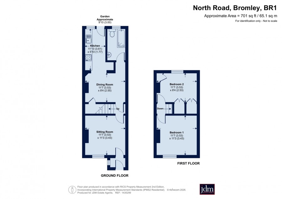 Upstairs, the first floor provides two bedrooms and a family bathroom. The principal bedroom is a generously sized double room positioned at the rear of the property, offering a comfortable and peaceful retreat. The second bedroom, located at the front, is perfectly suited as a guest bedroom, nursery, or home office & loft space convenient for storage. A conveniently located bathroom serves both rooms.