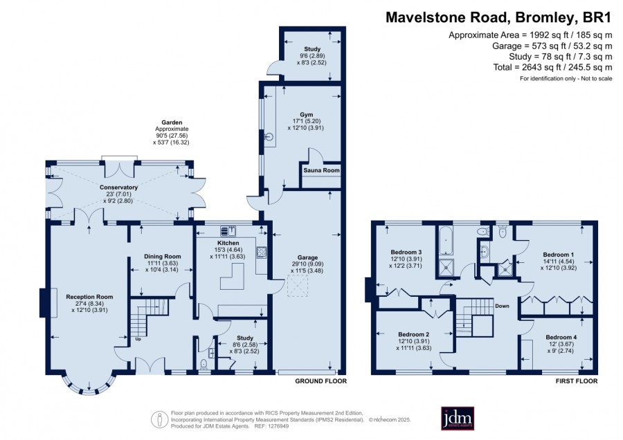 The final reception room is organised as a study, ideal for a work from home space but could also be a playroom, den, gym.