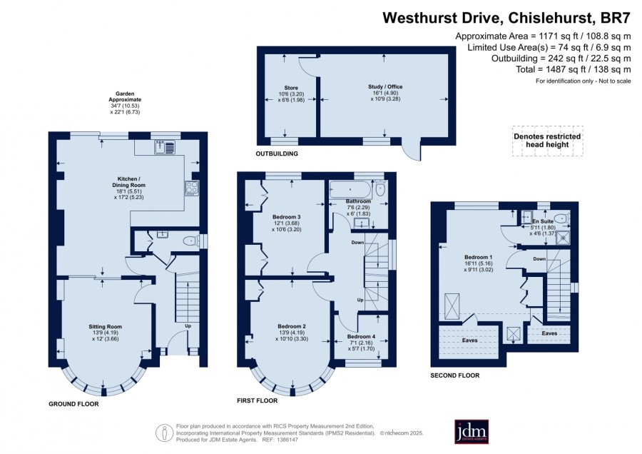 Upstairs, the first floor offers four bedrooms. The principal bedroom benefits from fitted wardrobes and a modern en-suite shower room. The remaining bedrooms have use of the stylish family bathroom complete with free standing clawfoot bath with hand held shower, WC and a vanity wash hand basin with storage beneath. There are marble effect tiles to the walls and floor and a window for ventilation.