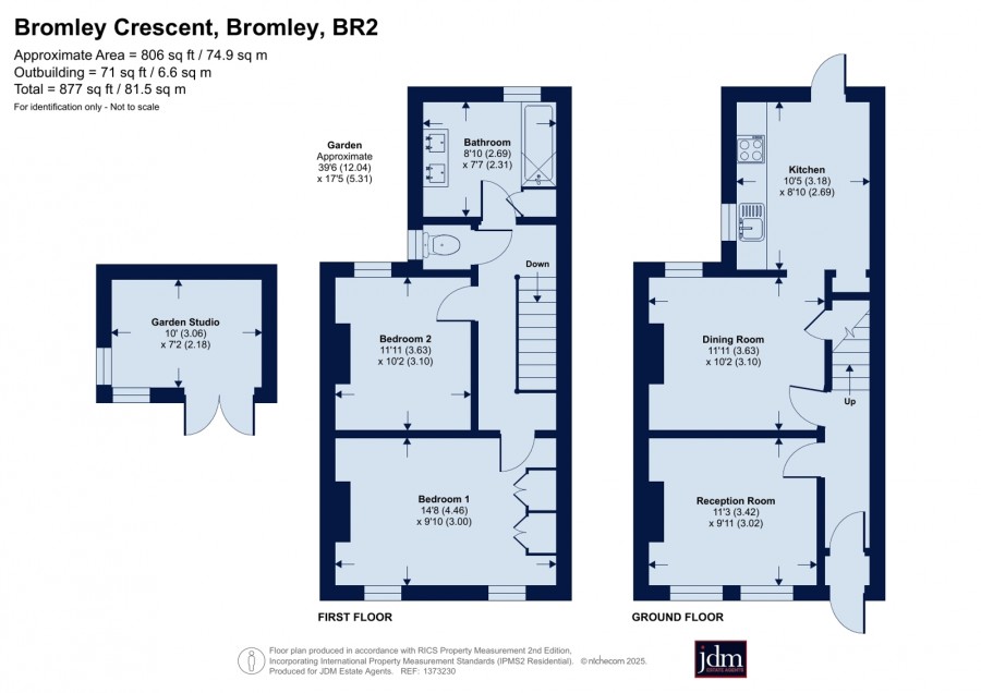 There are two double bedrooms. Bedroom 1 overlooks the gardens and is fitted with a long run of wardrobes and benefits from a modern, three piece en-suite shower room. Bedroom 2 overlooks the front and also has a built-in wardrobe. Completing the accommodation is a luxury bathroom fitted with a three piece suite.