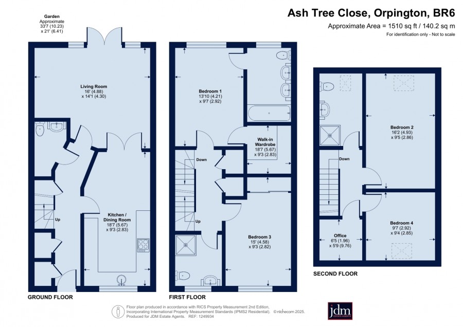 To the ground floor is a master bedroom with three piece en-suite shower room and a separate study to the front. Also leading off the central entrance hall is a two piece downstairs cloakroom, a third bedroom or playroom and a large storage space.