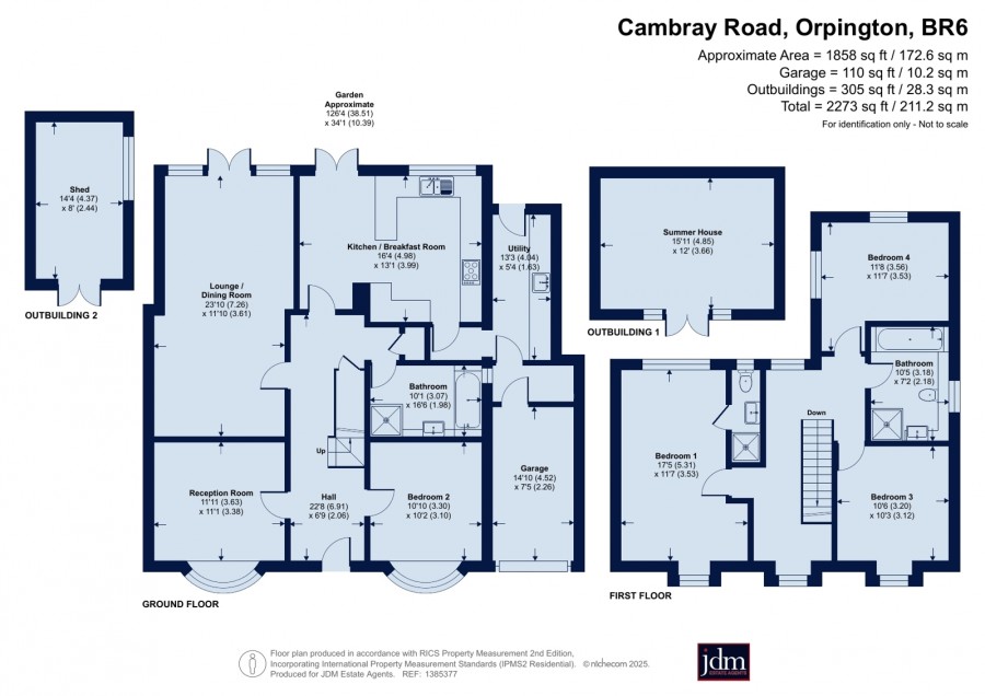 To the first floor are four double bedrooms, three of which benefit from built-in wardrobes. The master bedroom features an en-suite shower room. There is a family bathroom with separate bath and shower.