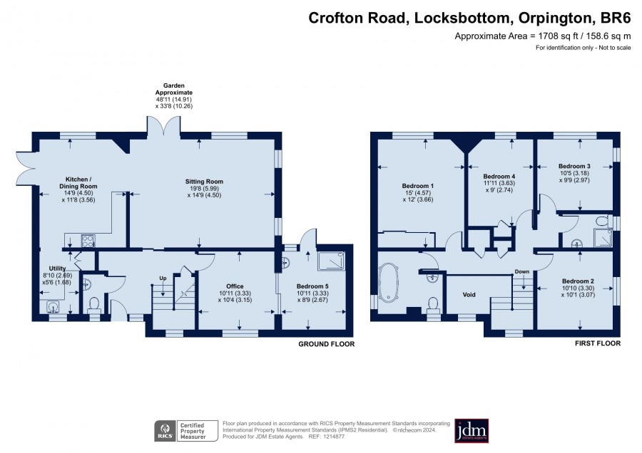 This extended, five bedroom semi detached family home was originally built in 1934 with a rear/side extension completed in 2024. Conveniently located less than half a mile from Chelsfield station giving access to London Bridge in approximately 18 minutes and access to Orpington High Street with its range of popular restaurants, cafes, shops, cinema and leisure facilities as well as local shops and cafes in Chelsfield. Warren Road, The Highway and Green Street Green schools are less than 1 mile away and St Olaves and Newstead Wood schools are just over 2 miles away. The ground floor accommodation provides a study/Bedroom 5, elegant lounge with feature fireplace with gas fire and a modern three piece shower room. To the rear is a dining room/family room with a feature electric fireplace and an archway leading through to the stunning kitchen/breakfast room. This space is flooded with natural light by way of bi-fold doors and remote controlled Velux style windows. The kitchen comprises a comprehensive range of modern wall and base units with a large central island creating an ideal area for spending time with the family. Appliances include a Siemens induction venting hob, two Neff ovens, two Zanussi dishwashers, Quooker boiling and sparkling water tap plus integrated full height fridge and freezer. In addition, there is a separate utility room with matching units and convenient doors to the garden and garage with space for both a washing machine and tumble dryer. Underfloor heating runs throughout the ground floor (excluding entrance hall and garage). The office, utility, kitchen/breakfast room and dining room are all fitted with Amtico flooring and the lounge and study are fitted with Kahrs engineered wood flooring. To the first floor are four good sized bedrooms, the master has the benefit of an en-suite shower room plus there is a separate family bathroom. Bedrooms 1, 2 and 3 all have Daikin air-conditioning units. The rear garden measures approximately 61' long and has a pleasant south easterly aspect. With a paved seating area to the immediate rear of the property, steps lead up to a lawned area with flower and shrub borders. To the front is off road parking and access to the garage.