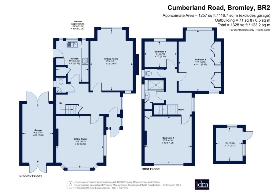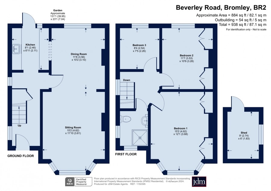 The rear garden measures approximately 114' long. With a raised paved seating area to the immediate rear of the property, steps lead down to a lawned area and further paved seating area and shed. Bordered by mature shrubs creating a secluded space to sit and enjoy the outdoors.