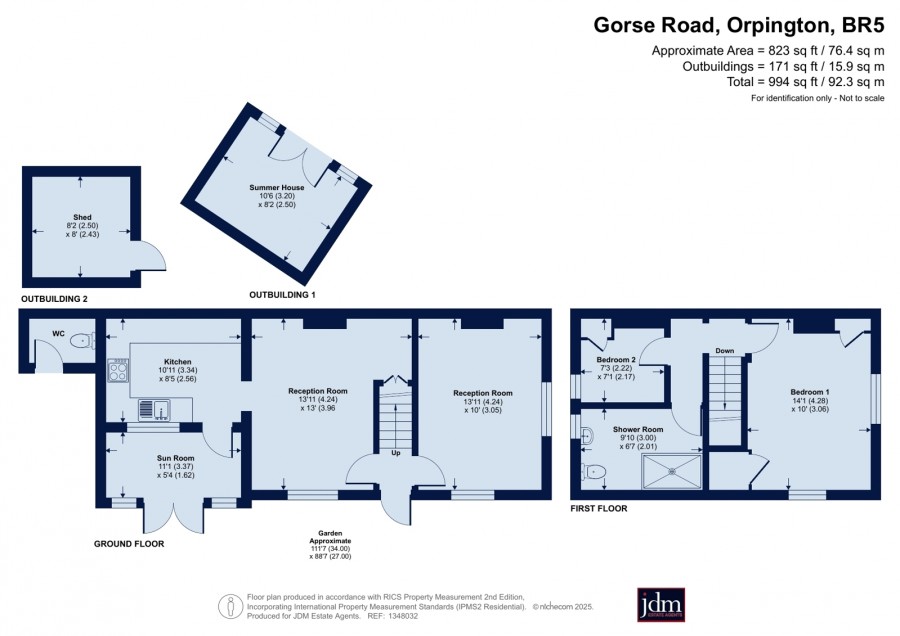 The first floor comprises two double bedrooms and a shower room.